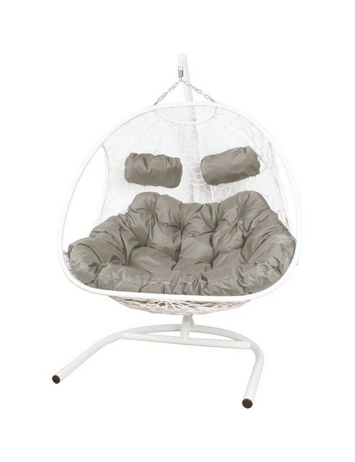 Подвесное кресло ДОБРЫНЯ с ротангом (белый с серой подушкой)