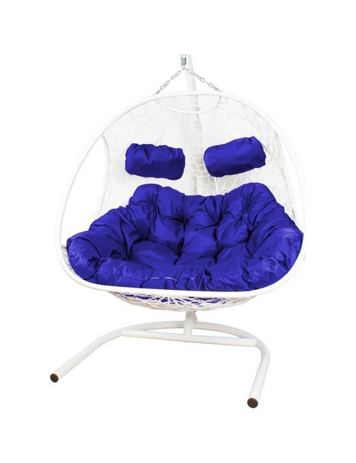 Подвесное кресло ДОБРЫНЯ с ротангом (белый с синей подушкой)