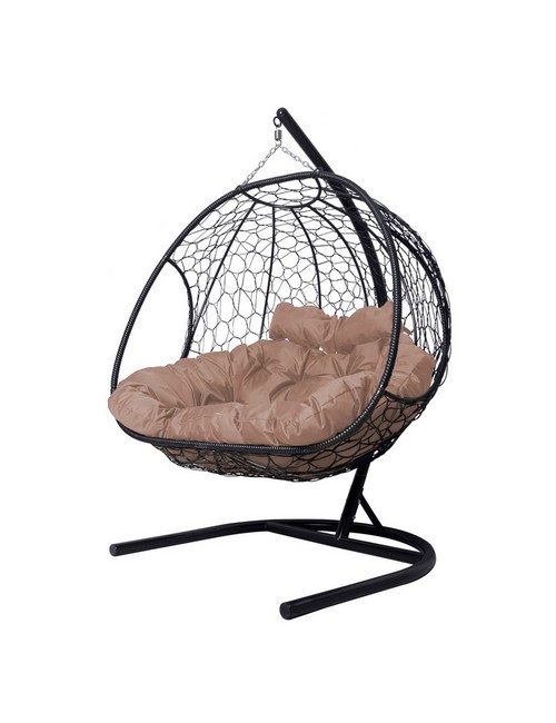 Подвесное кресло ДОБРЫНЯ с ротангом (черный с бежевой подушкой)