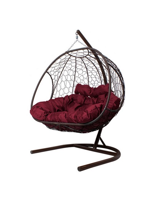 Подвесное кресло ДОБРЫНЯ с ротангом (коричневый с бордовой подушкой)