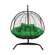 Подвесное кресло ДОБРЫНЯ с ротангом (коричневый с зеленой подушкой)