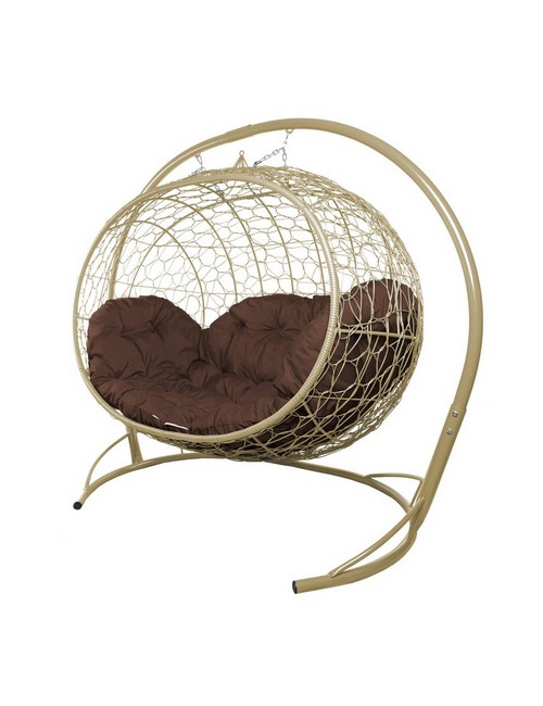 Подвесной диван УЛЕЙ с ротангом (бежевый с коричневой подушкой)