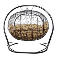 Подвесной диван УЛЕЙ с ротангом (черный с бежевой подушкой)
