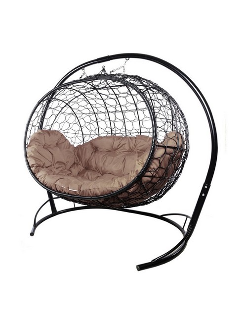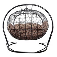 Подвесной диван УЛЕЙ с ротангом (черный с коричневой подушкой)