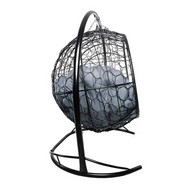 Подвесной диван УЛЕЙ с ротангом (черный с серой подушкой)