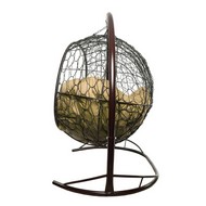 Подвесной диван УЛЕЙ с ротангом (коричневый с бежевой подушкой)