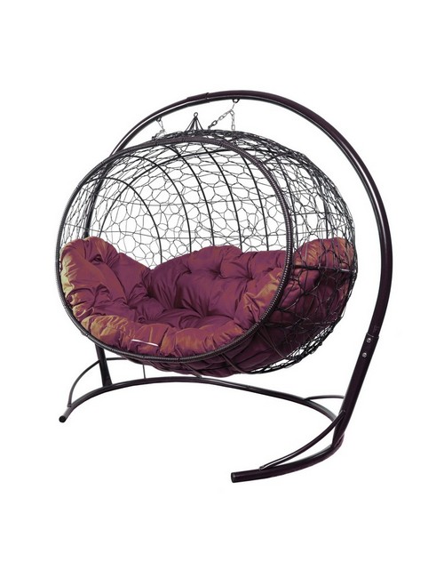 Подвесной диван УЛЕЙ с ротангом (коричневый с бордовой подушкой)