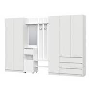 Технические характеристики: Прихожая Бали комплект 10 (белый). Функциональный мебельный гарнитур для прихожей, ориентированный на создание обширной и хорошо организованной системы хранения. Включает вешалку с зеркалом, трехстворчатый и двухстворчатый шкаф. Шкафы оснащены распашными дверцами, а ящики вешалки и трехстворчатого шкафа - роликовыми направляющими. Комплект обеспечивает раздельное хранение для всех категорий вещей: от объемной одежды и обуви до аксессуаров и сезонных предметов, создавая при этом целостную и упорядоченную композицию. Прихожая Бали комплект 10 - это решение для просторных прихожих, где необходима максимальная вместительность и четкая систематизация, воплощенная в сдержанном современном дизайне.