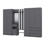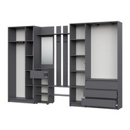 Технические характеристики: Прихожая Бали комплект 10 (графит). Функциональный мебельный гарнитур для прихожей, ориентированный на создание обширной и хорошо организованной системы хранения. Включает вешалку с зеркалом, трехстворчатый и двухстворчатый шкаф. Шкафы оснащены распашными дверцами, а ящики вешалки и трехстворчатого шкафа - роликовыми направляющими. Комплект обеспечивает раздельное хранение для всех категорий вещей: от объемной одежды и обуви до аксессуаров и сезонных предметов, создавая при этом целостную и упорядоченную композицию. Прихожая Бали комплект 10 - это решение для просторных прихожих, где необходима максимальная вместительность и четкая систематизация, воплощенная в сдержанном современном дизайне.