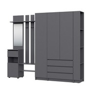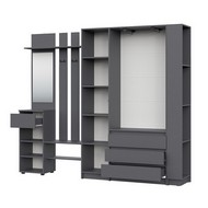 Технические характеристики: Прихожая Бали комплект 13 (графит). Функциональный мебельный гарнитур для прихожей, ориентированный на создание обширной и хорошо организованной системы хранения. Включает вешалку с зеркалом, трехстворчатый шкаф, а также угловое завершение. Шкафы оснащены распашными дверцами, а ящики вешалки и трехстворчатого шкафа - роликовыми направляющими. Комплект обеспечивает раздельное хранение для всех категорий вещей: от объемной одежды и обуви до аксессуаров и сезонных предметов, создавая при этом целостную и упорядоченную композицию. Прихожая Бали комплект 13 - это решение для просторных прихожих, где необходима максимальная вместительность и четкая систематизация, воплощенная в сдержанном современном дизайне.