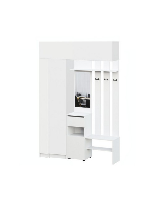Технические характеристики: Прихожая Бали комплект 15 (белый). Функциональный мебельный ансамбль для прихожей, создающий упорядоченное и стильное пространство с системой хранения. В комплектацию входит: вертикальный пенал для хранения, вешалка с зеркалом для ежедневного использования, угловой элемент для рационального использования пространства и два верхних шкафа для сезонных вещей. Ящики на роликовых направляющих. Набор предлагает полную организацию прихожей: от размещения верхней одежды и обуви до хранения аксессуаров и демонстрации декора, сохраняя ощущение легкости благодаря своему цвету и модульной конструкции. Прихожая Бали комплект 15 - это готовое решение для создания гармоничного и практичного интерьера, идеально подходящее для современных квартир, где ценится порядок и эргономика.