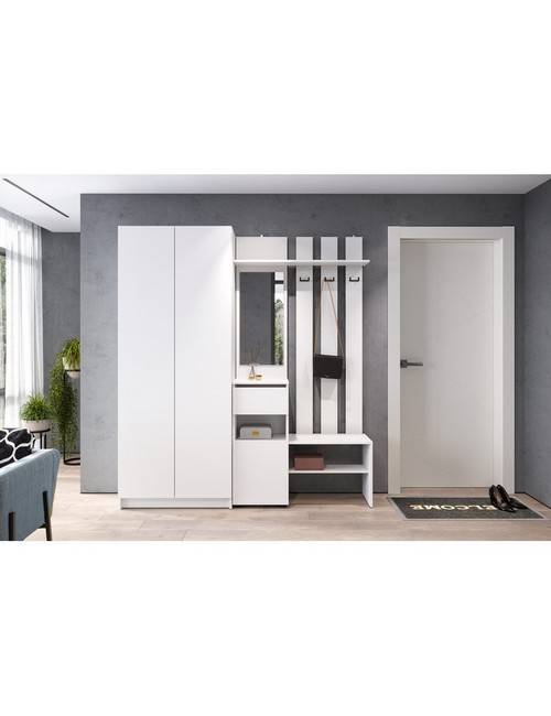 Технические характеристики: Прихожая Бали комплект 8 (белый). Функциональный мебельный гарнитур для прихожей, ориентированный на создание обширной и хорошо организованной системы хранения. Включает вешалку с зеркалом и двухстворчатый шкаф. Шкаф оснащен распашными дверцами, а ящики вешалки и шкафа - роликовыми направляющими. Комплект обеспечивает раздельное хранение для всех категорий вещей: от объемной одежды и обуви до аксессуаров и сезонных предметов, создавая при этом целостную и упорядоченную композицию. Прихожая Бали комплект 8 - это решение для просторных прихожих, где необходима максимальная вместительность и четкая систематизация, воплощенная в сдержанном современном дизайне.