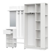 Технические характеристики: Прихожая Бали комплект 9 (белый). Функциональный мебельный гарнитур для прихожей, ориентированный на создание обширной и хорошо организованной системы хранения. Включает вешалку с зеркалом, двухстворчатый шкаф, а также угловое завершение. Шкафы оснащены распашными дверцами, а ящики вешалки и шкафа - роликовыми направляющими. Комплект обеспечивает раздельное хранение для всех категорий вещей: от объемной одежды и обуви до аксессуаров и сезонных предметов, создавая при этом целостную и упорядоченную композицию. Прихожая Бали комплект 9 - это решение для просторных прихожих, где необходима максимальная вместительность и четкая систематизация, воплощенная в сдержанном современном дизайне.