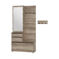 Особенности: Максимальная нагрузка на полку - 10 кг. Шариковые направляющие 300 мм. Толщина кромки – 0,4 мм. Дуб каньон кромится в цвет корпуса. Фасадные части цвета дуб каньон кромятся цветом венге. Интегрированный срез на фасаде. Опоры под саморез высотой 27 мм. Зеркало крепится на фабрике, тип обработки – еврокромка. Петли створок накладные.