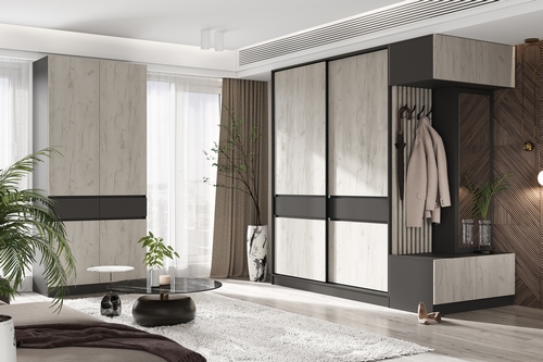 Особенности: Прихожая Роджина комплект 2 выполнена в минималистичном стиле, где все продумано до мелочей. В комплект входит шкаф-купе, шкаф двухстворчатый и прихожая. Направляющие ящиков - шариковые полного выдвижения. Штанги для вешалок в комплекте.
