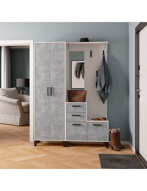 Технические характеристики: Прихожая Витра центральная секция и шкаф (белый, ателье светлое) - впишется в любой интерьер квартиры благодрая своему актуальному дизайну. В комплекте центральная секция и платяной шкаф. Прихожая позволяет хранить все необходимые принадлежности. Дверцы прихожей Витра распашные. Можно компоновать с другими модулями из серии мебели Витра.