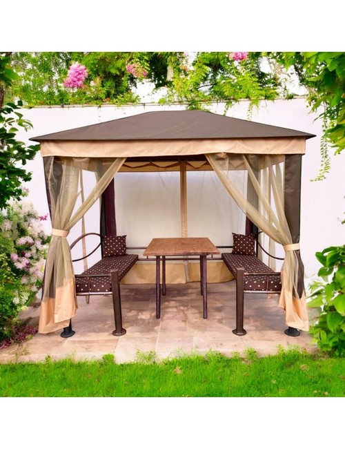 Дополнительно: комплектация садового шатра Визит - стол, 2 лавочки. Рассчитан на 6 человек.