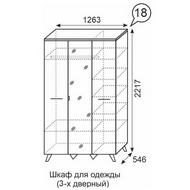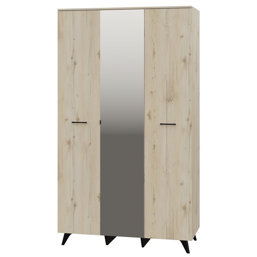 Технические характеристики: Трёхдверный шкаф для одежды с зеркалом. Оснащен продольной штангой и полками для белья. Петли с доводчиками на фасадах. Стильная фурнитура и ножки. Цвет может отличаться от представленного на фотографии.