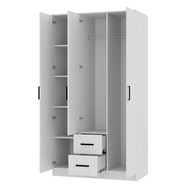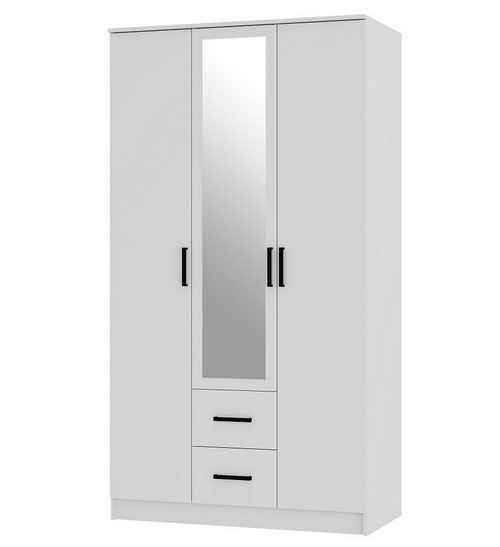 Дополнительно: Шкаф Фьюжн ШК-09 является воплощением эстетики минимализма. Белый цвет в сочетании с черной фурнитурой, строгие линии, простой конструктив - все это лучшие черты мебельного дизайна. 3-х створчатый шкаф - универсальное решение для организации хранения одежды как в просторном помещении, так и в небольшом. Модуль оснащен двумя стационарными штангами, двумя выкатными ящиками и набором полок. Зеркальный фасад визуально облегчает конструкцию шкафа и добавляет воздуха интерьеру, в котором он расположен. Шариковые направляющие полного, плавного и бесшумного выдвижения. Стильные и удобные ручки. Разноплановое наполнение: штанги, полки, ящики. Зеркальная створка на фасаде.