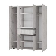 Особенности: Направляющие ящика - шариковые. Шкаф 4-х створчатый Мрия ШК-13, Бетон пайн светлый, Графит комплектуется штангами для вешалок. Механизм открывания дверей push-to-open. Максимальная нагрузка на полку, штангу - 10 кг. Максимальная нагрузка на ящик - 5 кг.