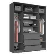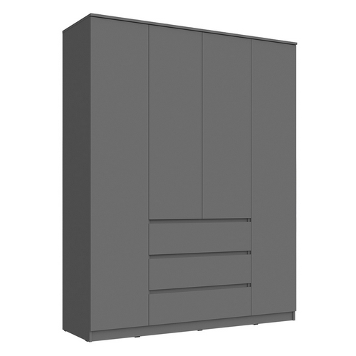 Особенности: Шкаф четырехстворчатый Челси (графит). Шкаф Челси четырехстворчатый в современной отделке поможет рационально использовать пространство в комнате. Внутреннее наполнение со штангой и многочисленными полками. Дверцы шкафа распашные. Штанга для вешалок в комплекте. Направляющие ящиков - шариковые. Количество полок - 8 шт. Реальный цвет товара может отличаться от цвета товара на фотографии. Можно компоновать с другими модулями из серии мебели Челси.