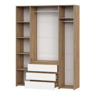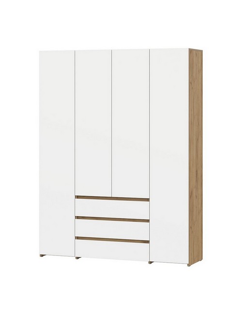 Технические характеристики: Шкаф четырехстворчатый Некст 1 (дуб золотистый, белый). Просторный и многофункциональный четырехстворчатый шкаф, созданный для комплексной организации хранения одежды, белья и аксессуаров. Сочетание светлых оттенков делает модель визуально легкой и универсальной для спальни, гардеробной или просторной прихожей. Пять полок идеальны для хранения одежды, свитеров, джинс, сумок, постельного белья или обуви в коробках. В шкафу предусмотрено две штанги, одна из которых имеет уменьшенную длину. Это позволяет эффективно использовать пространство: длинная штанга подходит для платьев, пальто и рубашек, а короткая - для брюк, юбок или детской одежды. Три выдвижных ящика на шариковых направляющих предназначены для деликатного хранения нижнего белья, носков, аксессуаров или документов. Закрытое хранение обеспечивает порядок и защиту от пыли. Шкаф четырехстворчатый Некст 1 - это идеальное решение для создания организованного, аккуратного и эстетичного пространства для хранения.