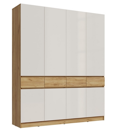 Шкаф четырехстворчатый Роджина (дуб крафт, белый глянец)