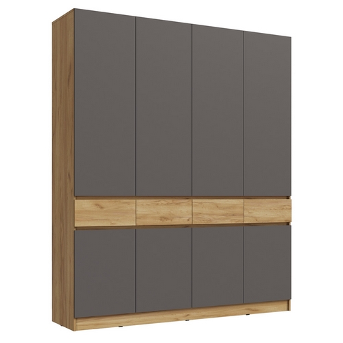 Особенности: Шкаф четырехстворчатый Роджина (дуб крафт, графит) стильный и функциональный. Элегантный дизайн и современная отделка. Открывание дверей шкафа производится за дверцы фасада. Дверцы - распашные. Направляющие ящиков - шариковые. Штанга для вешалок в комплекте.