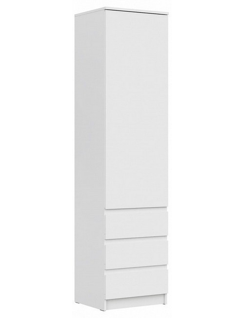 Ширина, см: 50,1. Высота, см: 200,3. Выступ, см: 43,3. Размер упаковки, (мм): 2035x545x50, 625x450x95. Вес (кг): 46. Компоненты, входящие в комплект: 1 дверца, 3 ящика, 4 полки. Стиль: модерн. Страна-производитель: Россия. Объем (м3): 0.082. Количество секций для хранения: 3. Основной цвет: разноцветная. Материал фасада: ЛДСП Е1. Материал корпуса: ЛДСП Е1. Тип поверхности корпуса: матовый. Место размещения: Пол. Помещение: Гостиная, Кабинет, Прихожая, Спальня. Гарантия (месяц): 24. Основное помещение: Гостиная. Цвет корпуса: белый. Цвет фасада: белый.