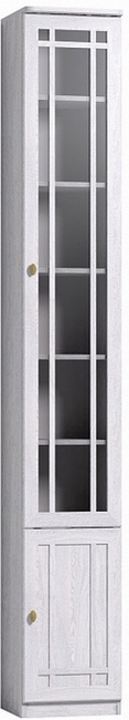 Технические характеристики: Шкаф с расположением петель с правой стороны. Шкаф состоит из 2-х отделений: верхнего со стеклянной вставкой в двери и нижнего. Внутри шкафа - 7 полок. Высота полок регулируется, что позволяет поставить на полки книги и альбомы разного формата. Рамочные фасады из профиля МДФ. Стекло двери тонированное - защищает книги от попадания прямых солнечных лучей. Шкаф крепится к стене за подвесы. Нагрузка на 1 полку до 12 кг. Шкаф выпускается без выборки под плинтус, чтобы каждый мог прирезать плинтус индивидуально по своим размерам. Поставляется в разобранном виде.