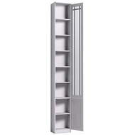Технические характеристики: Скос на левую сторону. Шкаф состоит из 2-х отделений: верхнего со стеклянной вставкой в двери и нижнего. Внутри шкафа - 7 полок. Высота полок регулируется, что позволяет поставить на полки книги и альбомы разного формата. Рамочные фасады из профиля МДФ. Стекло двери тонированное - защищает книги от попадания прямых солнечных лучей. Шкаф крепится к стене за подвесы. Нагрузка на 1 полку до 12 кг. Шкаф выпускается без выборки под плинтус, чтобы каждый мог прирезать плинтус индивидуально по своим размерам. Поставляется в разобранном виде.