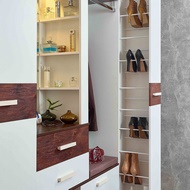 Технические характеристики: Регулируемые опоры. Выкатной ролик. Стальной прут 10 мм диаметром. Ручки из массива дерева. Предусмотрена право- и левосторонняя сборка модуля. Обувница вмещает до 18 пар обуви. Шкаф выдвигается без усилий благодаря шариковым направляющим полного выдвижения и выкатным роликам.