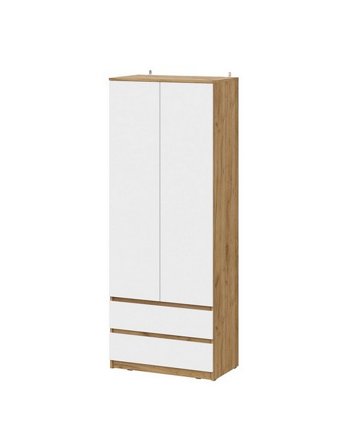 Технические характеристики: Шкаф для одежды Денвер (дуб золотистый, белый). Шкаф Денвер - это практичное и стильное решение для организации хранения одежды в спальне, гардеробной или прихожей. Модель сочетает светлую, свежую палитру и функциональную компоновку, создавая ощущение порядка и простора. Отделение со штангой для размещения одежды на плечиках, два выдвижных ящика удобны для компактного хранения белья, аксессуаров или других вещей. Две распашные дверцы закрывают оба отделения, скрывая содержимое и поддерживая аккуратный вид интерьера. Светлая гамма и классический дизайн делают шкаф универсальным для разных стилей интерьера - от скандинавского до современной классики. Шкаф для одежды Денвер - это баланс эстетики и функциональности, помогающий содержать вещи в порядке и создающий уютную атмосферу в комнате.