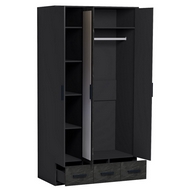 Модель оснащена вместительной продольной штангой, комплектом полок и 3-мя ящиками полного выдвижения.