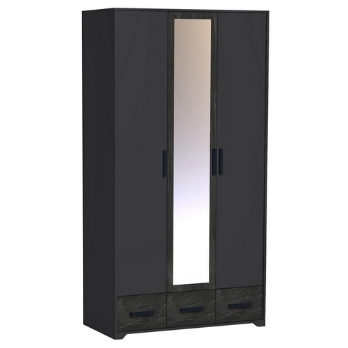 Зеркало на центральном фасаде визуально облегчает конструкцию шкафа и добавляет ему функциональности.