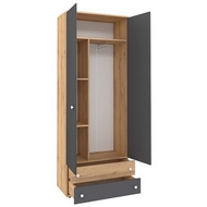 Особенности Шкафа для одежды и белья серый Лойс 92: Выдвижная штанга и комплект полок для одежды и белья. Ручки с покрытием soft-touch. Комбинированные фасады. Шариковые направляющие полного выдвижения на ящиках.