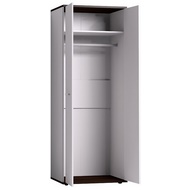 Технические характеристики: Крепится на стену за подвесы. Горизонтальные щиты из ЛДСП толщиной 22 мм. Ручки из массива дерева. Стационарная штанга.
