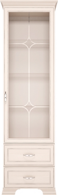 Технические характеристики: Шкаф оснащен двумя выдвижными ящиками и отделением-витриной с стеклянной дверью. Внутри отделения с дверью расположены три стеклянных полки. Дверные петли с доводчиками. Ящики на шариковых направляющих полного выдвижения. Регулируемые опоры. Верхняя часть шкафа декорирована карнизом. Дополнительная опция: комплект зеркал на заднюю стенку (оплачивается отдельно). Поставляется в разобранном виде.