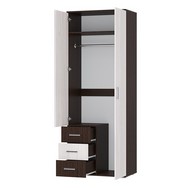 Особенности: Оснащён тремя выдвижными ящиками и зеркалом на одной из дверей. Внутри шкафа расположена металлическая перекладина для вешалок и полка.