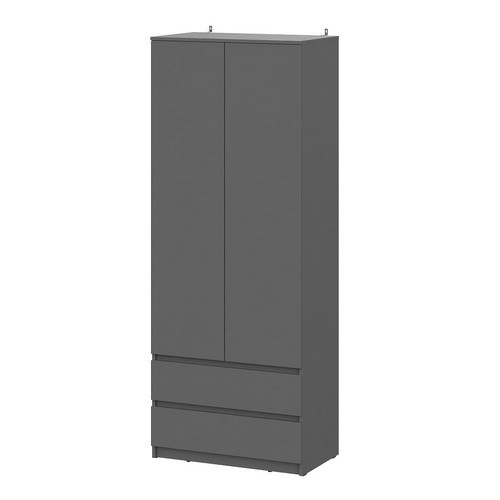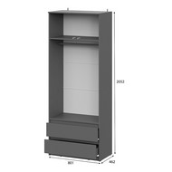 Особенности: Стильный двухдверный шкаф для одежды и белья Денвер графит с двумя выдвижными ящиками подойдет для любого современного интерьера. Скрытая фурнитура. Направляющие роликовые. Штанга - 1 шт. Фурнитура в комплекте. Нагрузка на полки 10 кг. Нагрузка на ящики 5 кг.