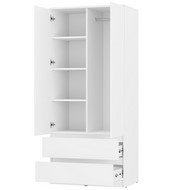 Особенности: Двухдверный шкаф с Симпл ШК-13 представляет собой вместительный гардероб, который сочетает функциональность и стильный дизайн. Белый цвет шкафа визуально увеличит пространство и позволит вписать его в любой современный интерьер. Шкаф состоит из двух закрытых ниш с полками и стационарной штангой для вешалок и двух выдвижных ящиков. Ящики оснащены шариковыми направляющими для плавного открытия и закрытия. Отсутствие лицевой фурнитуры придает шкафу стильный вид. Максимальная нагрузка на ящик - 5 кг, на полку и штангу - 10 кг. Можно компоновать с другими модулями из серии мебели Симпл.