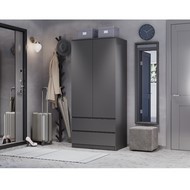 Особенности: Двухдверный шкаф с Симпл ШК-13 в цвете графит представляет собой вместительный гардероб, который сочетает функциональность и стильный дизайн. Шкаф состоит из двух закрытых ниш с полками и стационарной штангой для вешалок и двух выдвижных ящиков. Ящики оснащены шариковыми направляющими для плавного открытия и закрытия. Отсутствие лицевой фурнитуры придает шкафу стильный вид. Максимальная нагрузка на ящик - 5 кг, на полку и штангу - 10 кг. Можно компоновать с другими модулями из серии мебели Симпл.