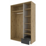 Ширина, см: 130. Высота, см: 195. Выступ, см: 52. Компоненты, входящие в комплект: 1 штанга для вешалок, 1 ящик, 3 дверцы, 7 полок. Стиль: модерн. Страна-производитель: Россия. Объем (м3): 0.167. Количество секций для хранения: 1. Основной цвет: разноцветная. Материал фасада: ЛДСП Е1. Материал корпуса: ЛДСП Е1. Тип поверхности корпуса: матовый. Дополнительное описание: В комплектацию входит светодиодная ленточная подсветка. Блок питания докупается отдельно. Место размещения: Пол. Помещение: Гостиная, Кабинет, Прихожая, Спальня. Гарантия (месяц): 24. Основное помещение: Гостиная. Цвет корпуса: дуб артизан. Цвет фасада: дуб артизан, серый, черный.
