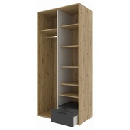 Ширина, см: 90. Высота, см: 195. Выступ, см: 52. Компоненты, входящие в комплект: 1 штанга для вешалок, 1 ящик, 2 дверцы, 6 полок. Стиль: модерн. Страна-производитель: Россия. Объем (м3): 0.147. Количество секций для хранения: 1. Основной цвет: разноцветная. Материал фасада: ЛДСП Е1. Материал корпуса: ЛДСП Е1. Тип поверхности корпуса: матовый. Дополнительное описание: В комплектацию входит светодиодная ленточная подсветка. Блок питания докупается отдельно. Место размещения: Пол. Помещение: Гостиная, Кабинет, Прихожая, Спальня. Гарантия (месяц): 24. Основное помещение: Гостиная. Цвет корпуса: дуб артизан. Цвет фасада: дуб артизан, серый, черный.