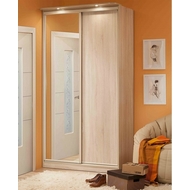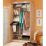 Технические характеристики: Шкаф оснащен стационарной штангой для вешалок, тремя полками, двумя нишами вверху и двумя внизу. Две двери, одна дверь с зеркалом. Зеркало проклеено сзади специальной защитной плёнкой (в случае если зеркало разобьётся, все осколки останутся на плёнке). В комплекте прилагаются шлегеля для дверей (комплект щёток с толстым ворсом, которые устанавливаются на профиль дверей шкафа-купе и приглушают удары дверей при закрывании, а также способствуют пыленепроницаемости). Дополнительно к шкафу можно приобрести карниз с подсветкой, брючницу и стеллаж.