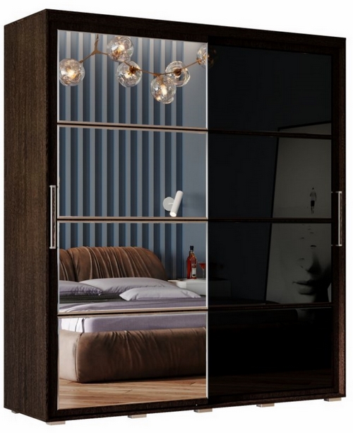 Технические характеристики: Фасад шкафа с зеркалом. Шкаф оснащен штангой для вешалок, полками и двумя выдвижными ящиками. Зеркала с фацетом.