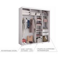 Технические характеристики: Фасад шкафа с зеркалом. Шкаф оснащен штангой для вешалок, полками и двумя выдвижными ящиками. Зеркала с еврокромкой. Регулируемые опоры. Максимальная нагрузка на полку - 15 кг. Выдвижные ящики на шариковых направляющих.