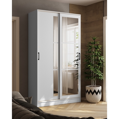 Особенности Шкафа-купе Стиль-2 120: Декор - белый с тиснением "древесные опоры". Шкаф оснащен штангой для вешалок и полками. Зеркальный фасад.