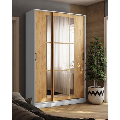 Особенности Шкафа-купе Стиль-2 140: Декор - белый с тиснением "древесные опоры". Шкаф оснащен штангой для вешалок и полками. Зеркальный фасад.
