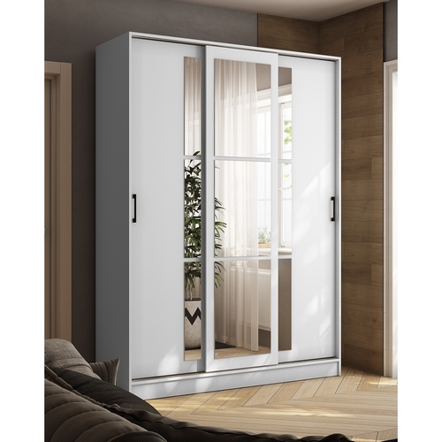 Особенности Шкафа-купе Стиль-2 160: Декор - белый с тиснением "древесные опоры". Шкаф оснащен штангой для вешалок и полками. Зеркальный фасад.